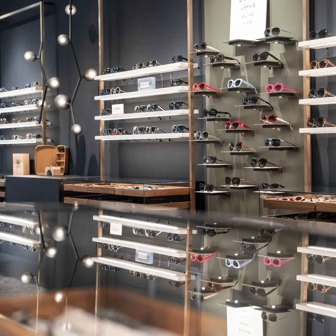 Einführung einer modernen, stilvollen Sonnenbrillenwand, die unseren Showroom bereichert.